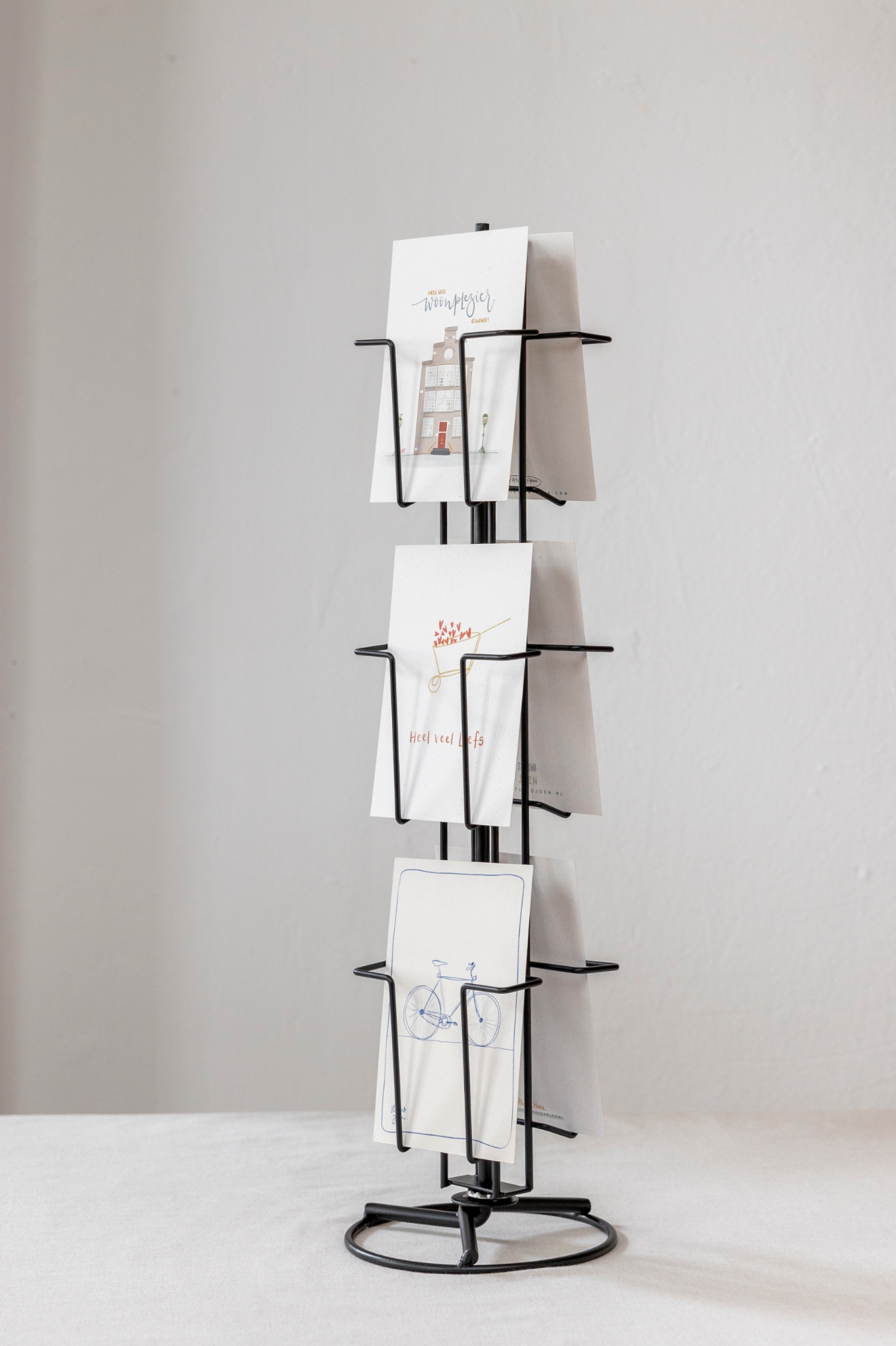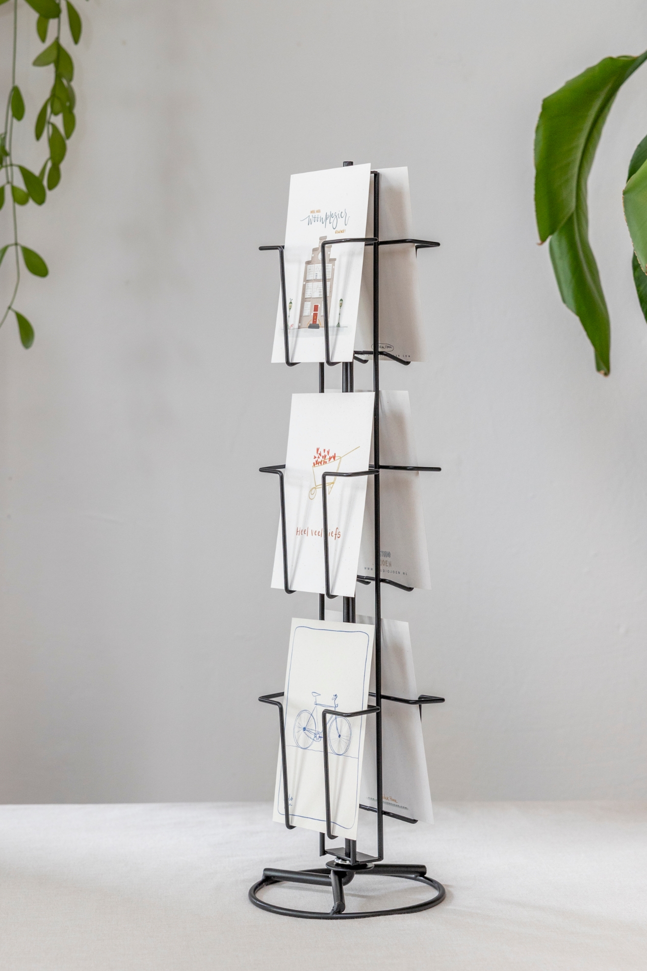 Baliedisplay nodig? Met deze draaibare metalen kaartendisplay heb je in een handomdraai telkens weer de juiste winkeldisplay voor handen. Gemaakt van stevig grijs metaal en een hele stabiele voet.